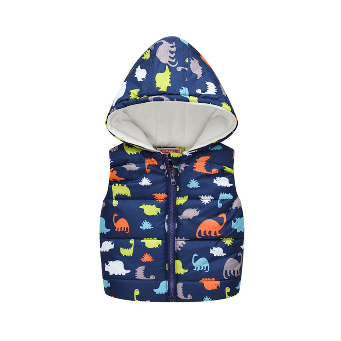 JM Dino Print Dark Blue Warm Inner Sleeveless Puffer Jacket 9954