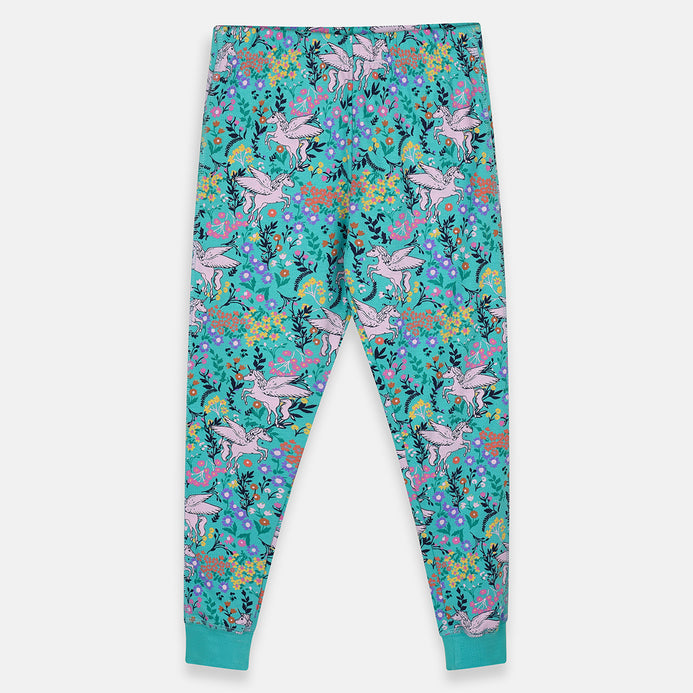 - MS Unicorn Flowers Print Turquoise Trouser 4237
