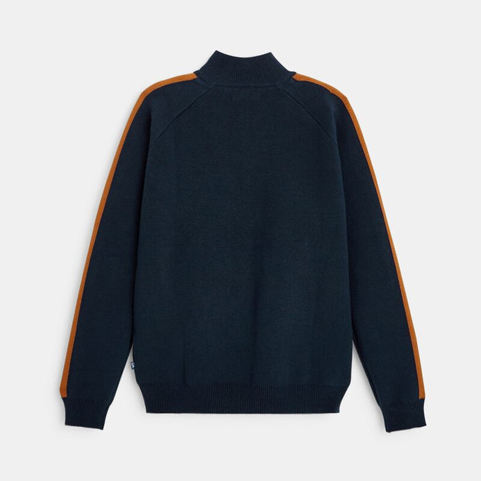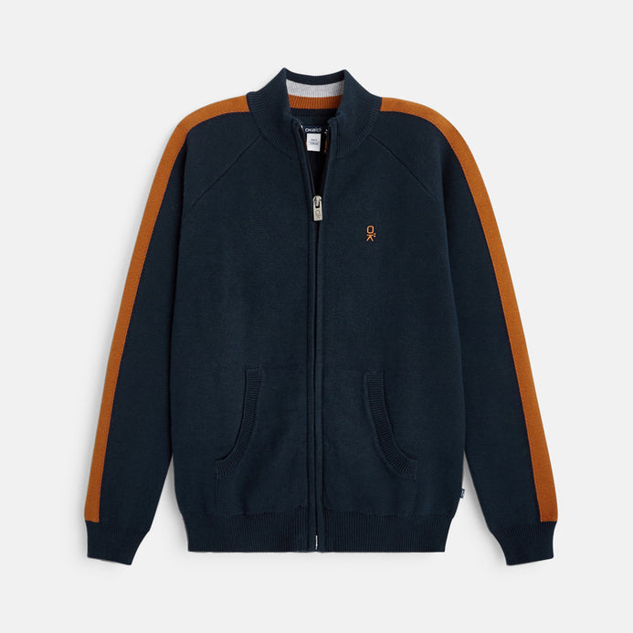 OK Mustard Line Shoulder Navy Blue Knit Zipper 7830