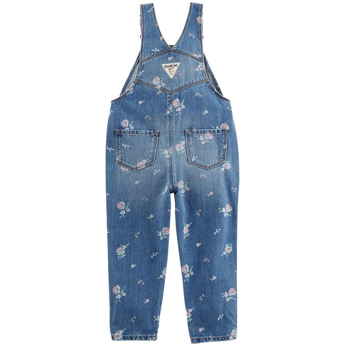 - Osk Flowers Print Mid Blue Denim Full Dungaree 3806