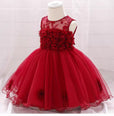 PP Floral Bokeh Front Red Fancy Frock 11013