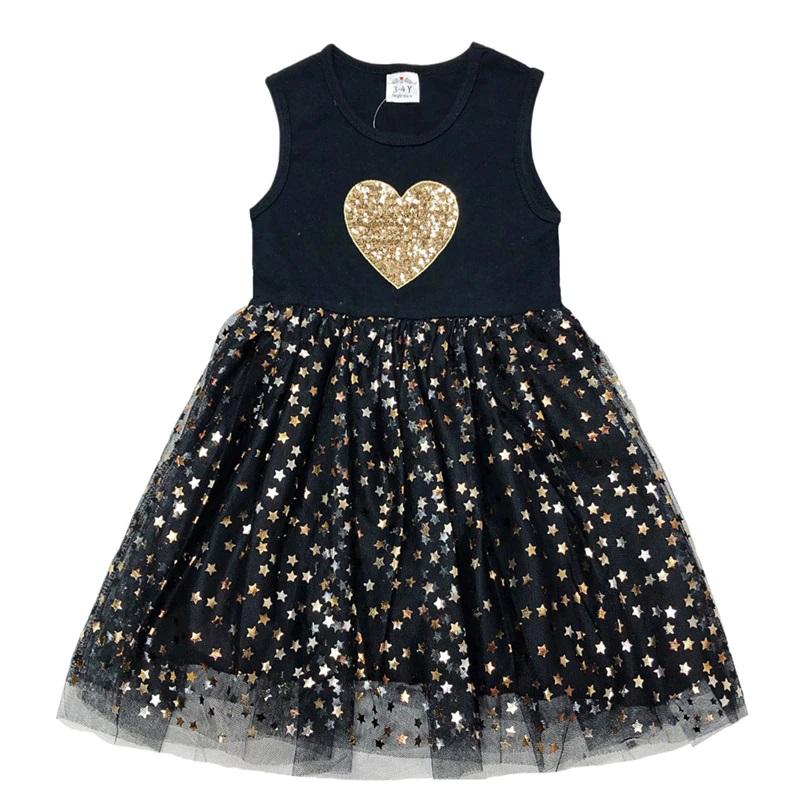 - VKT Sequence Heart All Over Star Bottom Black Frock 6043