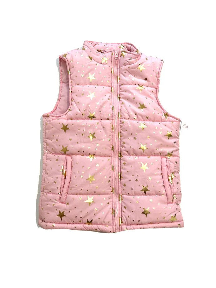 Wondering Foil Star Prints Sleeveless Pink Gilet 12655