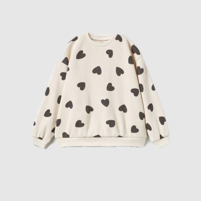 - ZR All Over Hearts Print Beige Thermal Sweatshirt 12518