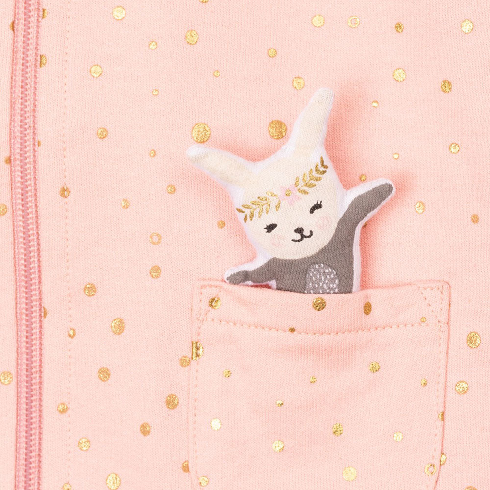51015 Rabbit Pocket Glitter Dots Pink Zipper 2792