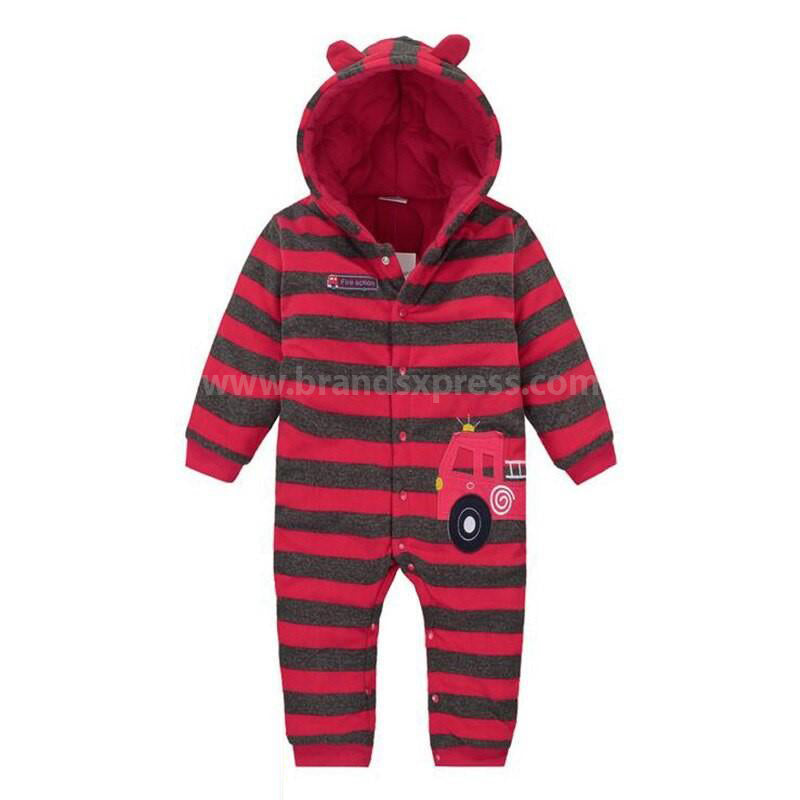 AB Aplic Fire Engine Grey And Red Stripe Warm Romper 7902