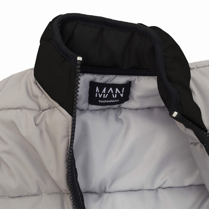 - BHM Sleeveless Grey Puffer Jacket with Black Neck 2642