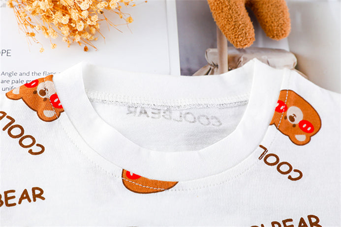 CN Cool Bear Print T-Shirt With Dungaree 2 Piece Set 10812