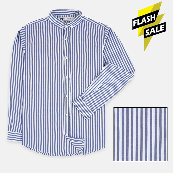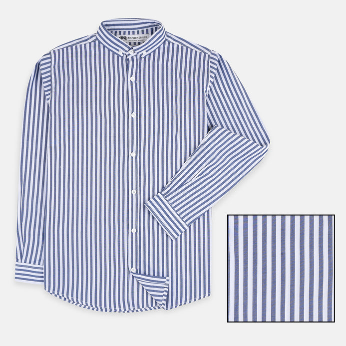 - OXN Vertical Navy Blue With White Stripe Casual Shirt 4196