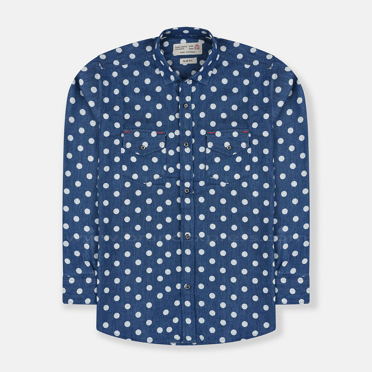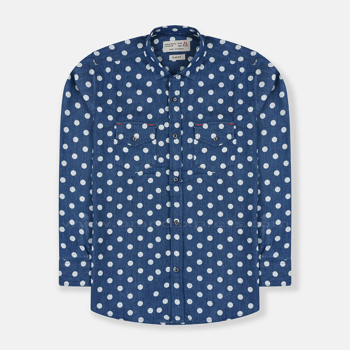 - ZR Polka Dots Denim Blue Casual Shirt 8705