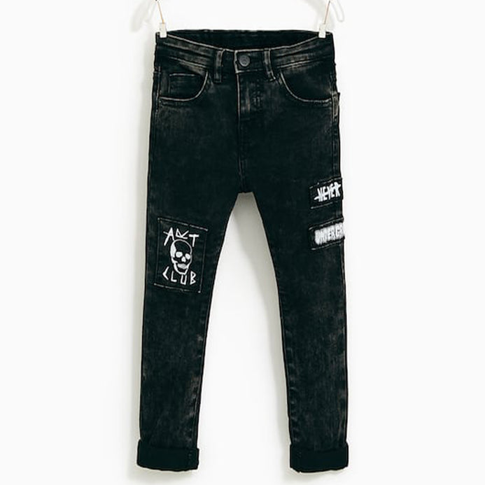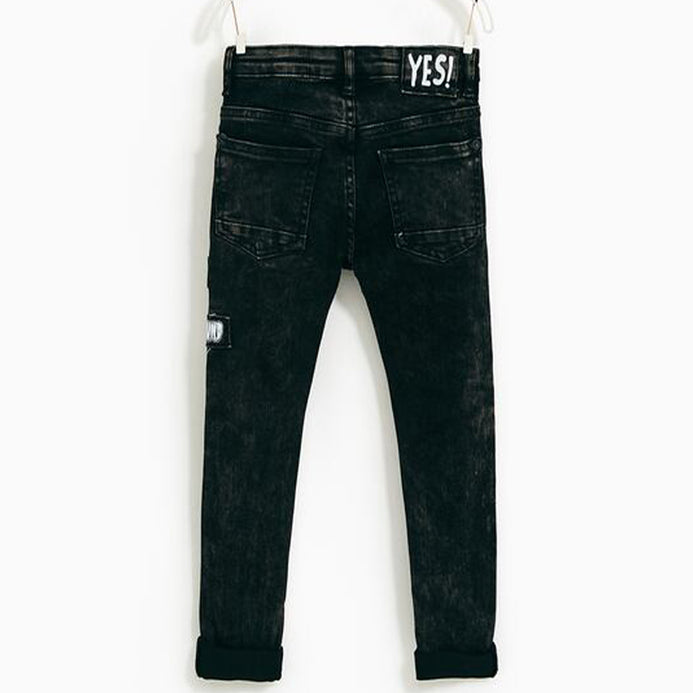 ZR Boys Black Acid Wash Underground Patch denim 1212