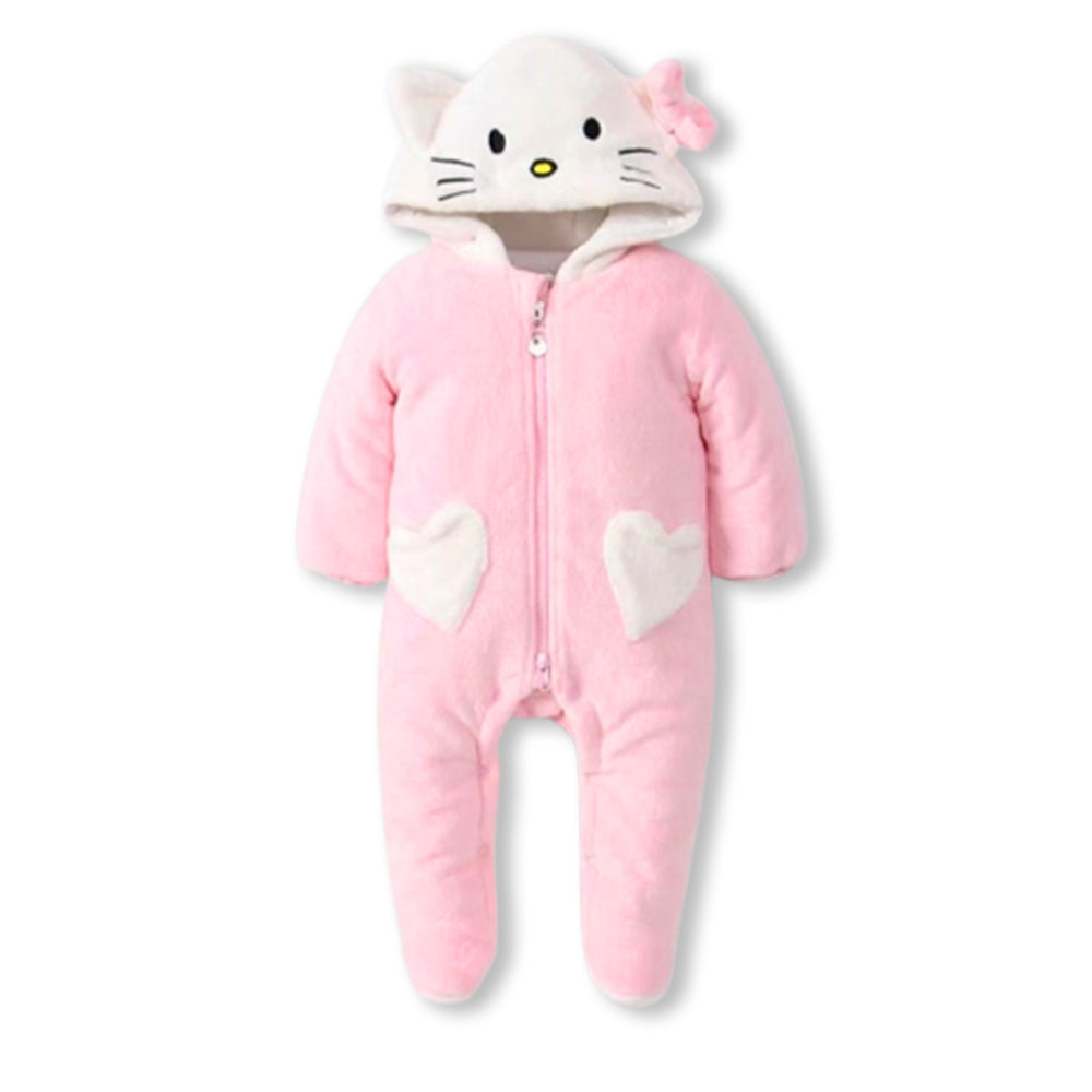 - MKS Light Pink Kitty Style Quilted Fur Romper With Cap 12359