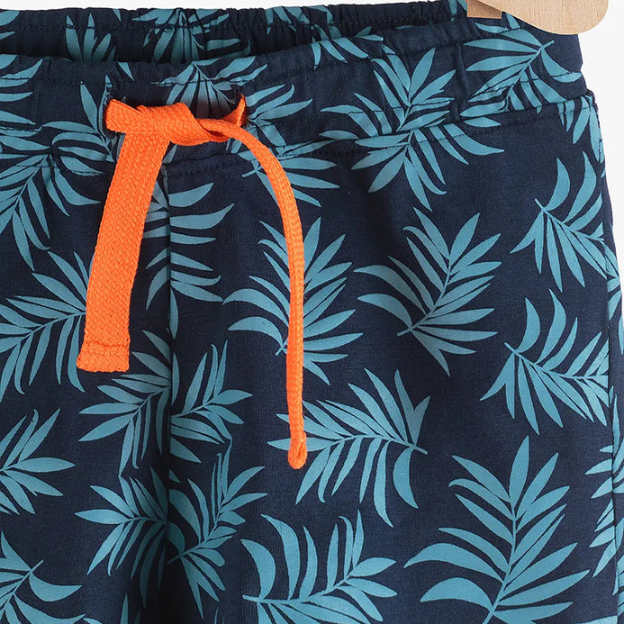 L&S All Over Leaves Print Orange Cord Blue Girls Shorts 11301