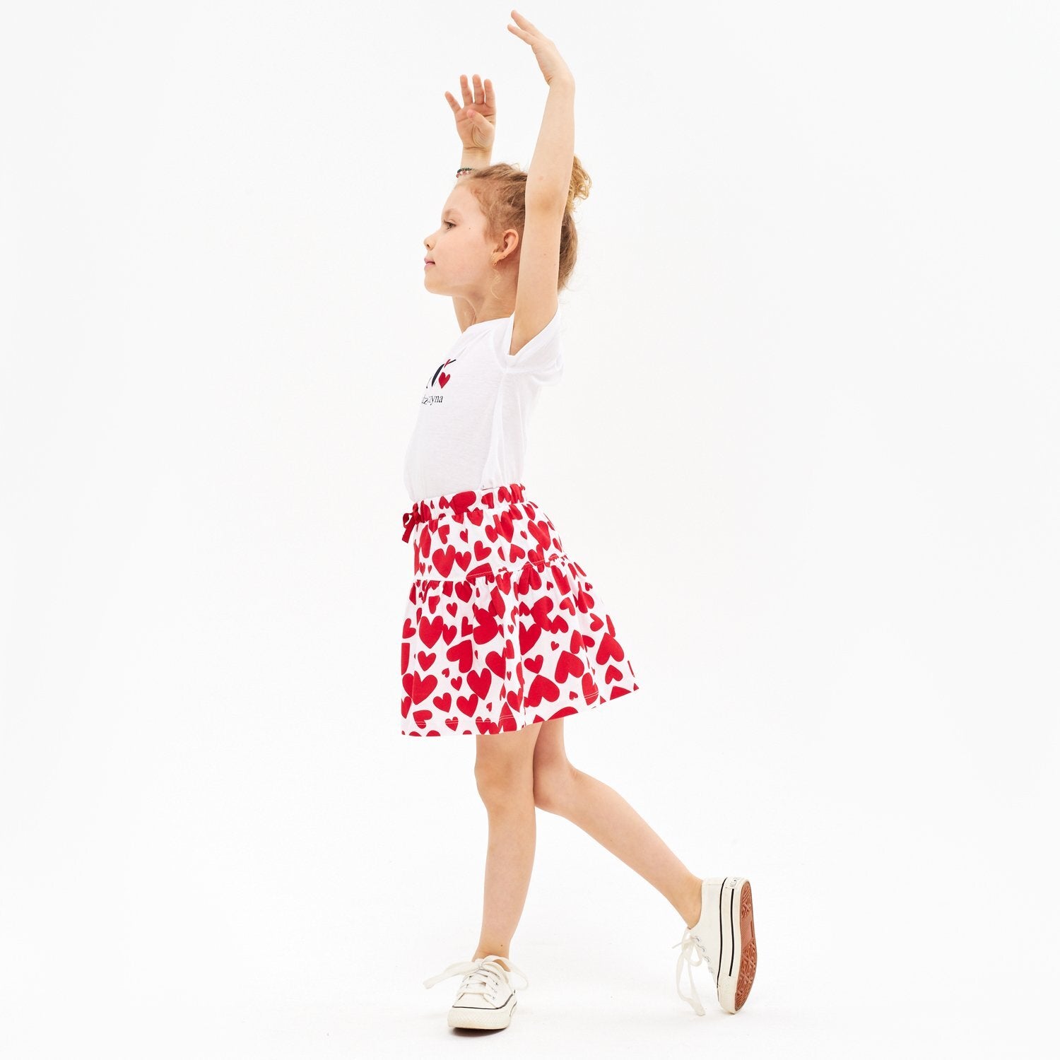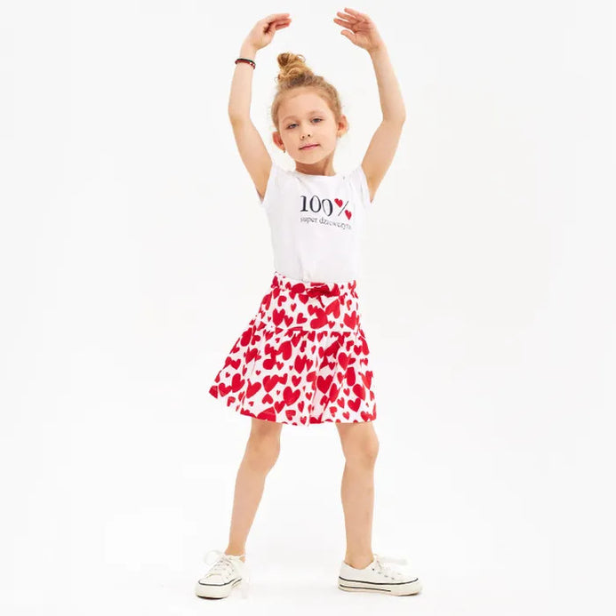 5.10.15 All Over Red Hearts Print White Skirt 11043