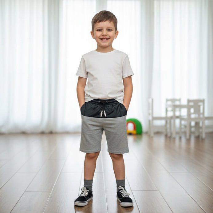 BC Plain Grey With Upper Black Smooth Penal Terry Shorts 14521