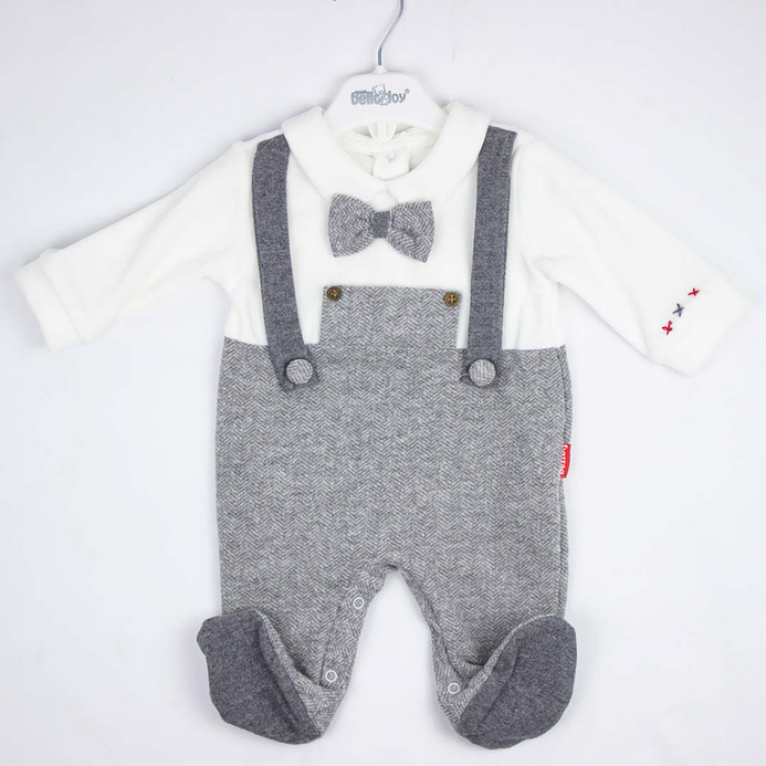 BJ Front Pocket Style Grey & White Warm Romper 10306
