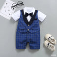 BNGB Blue Check Tuxedo Style Romper Set With Bow 10769