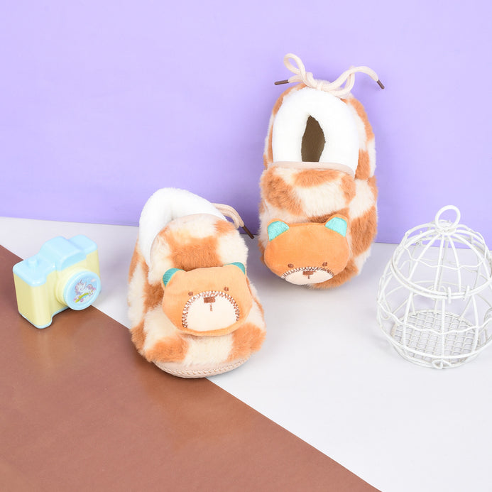 CN Bear Face Fluffy Warm Mustard Booties 10173