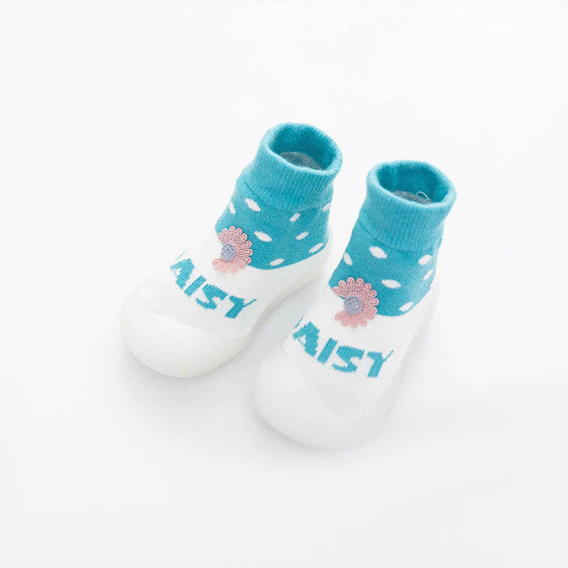 CN Daisy Flower Teal & White Silicon Bottom Socks Shoes 12558