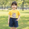 CN Full Zero Bear & LV Print Yellow T-Shirt with Denim Shorts 12974