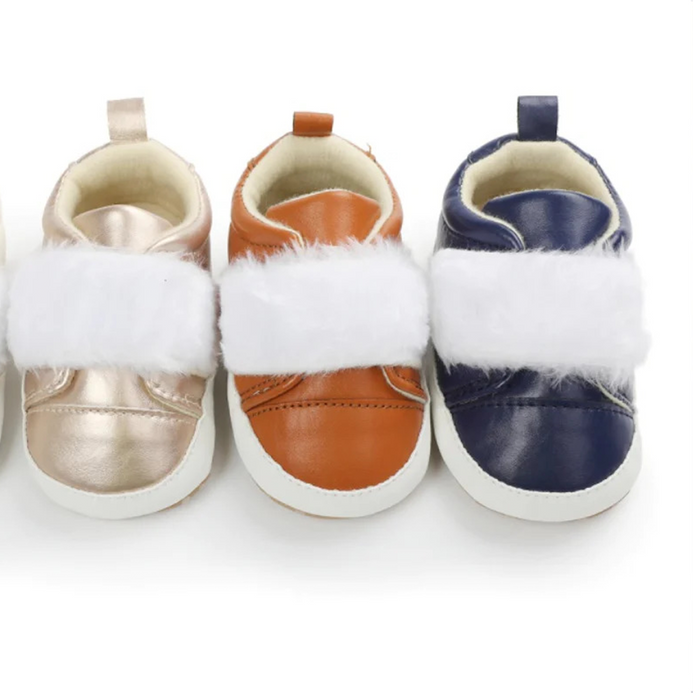 CN Furr Strap Navy Blue Soft Bottom Booties 10314
