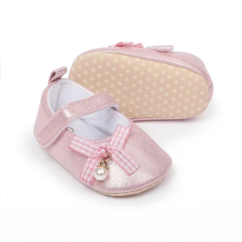 CN Side Check Bow Shimmering Pink Pumps Shoes 11897