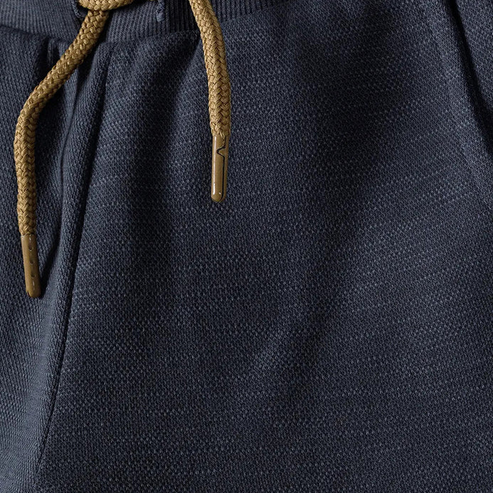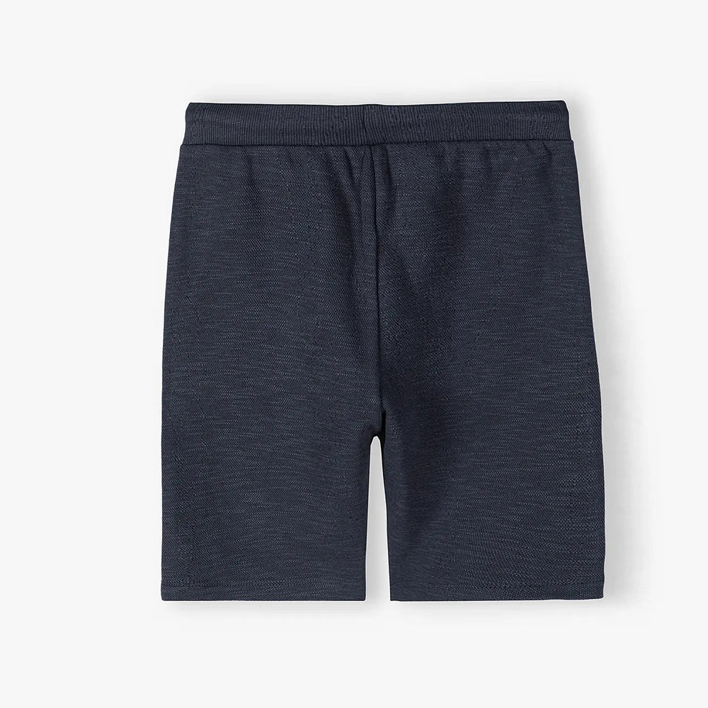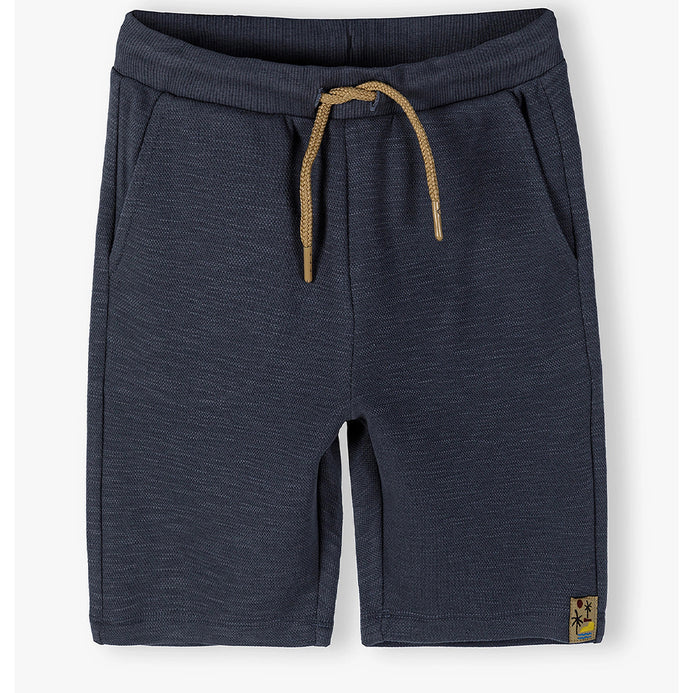 PRODUCT DESCRIPTION:Boy's black knitted shorts for the summer by 5.10.15. from the LOCAL ARTISAN NEW line! they are made of 90% cotton and 10% polyester. This material makes the presented shorts perfect for the summer. Cotton makes the shorts soft, hygroscopic , and the admixture of polyester ensures better breathability, flexibility and fit to the figure. Black shorts have a loose cut , they have an elastic waist and a beige drawstring, which allows for easy adjustment to the figure. These summer knitted shorts feature a embroidered graphic of palm trees by the sea on the lower left leg. The presented shorts for a boy are universal and will work for various occasions.