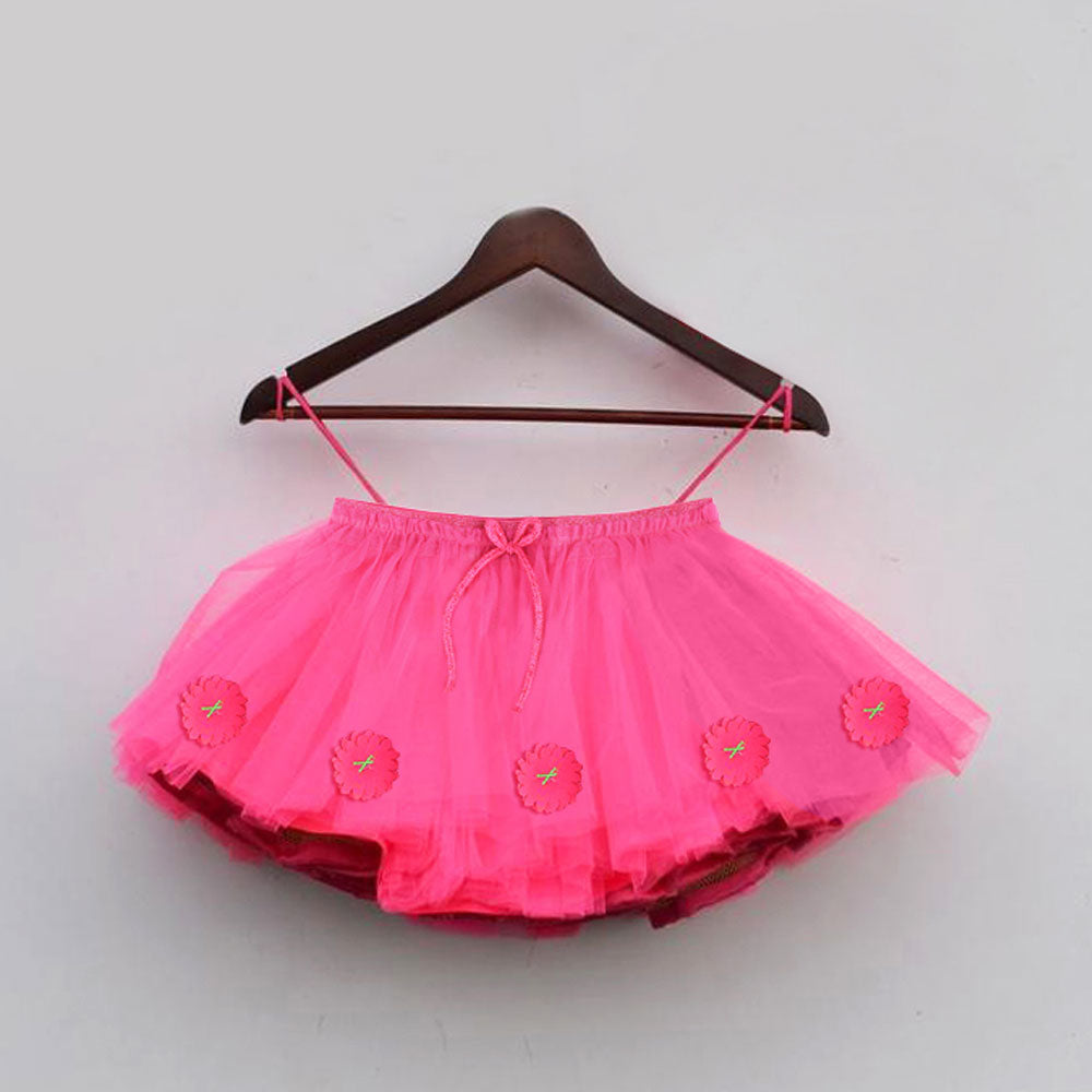 Kids Applic Flower Shocking Pink Skirt 7097