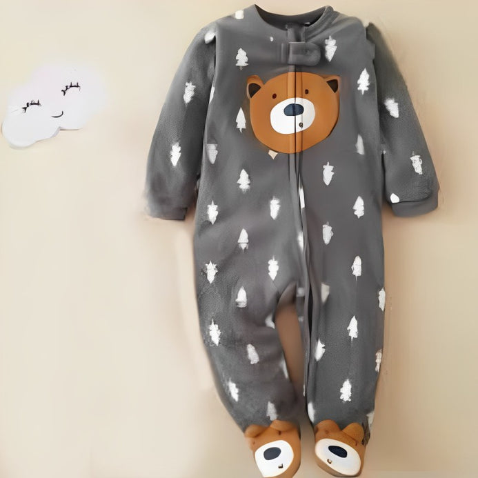CP Bear Face Applic Dark Grey Fleece Romper 12350