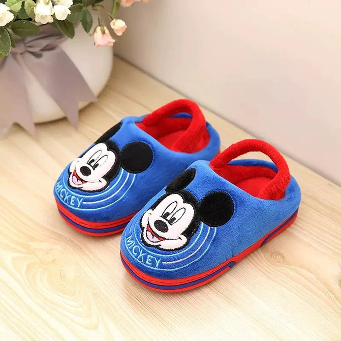 Disney Embroided Mickey Face Blue Furr Warm Slippers 10637