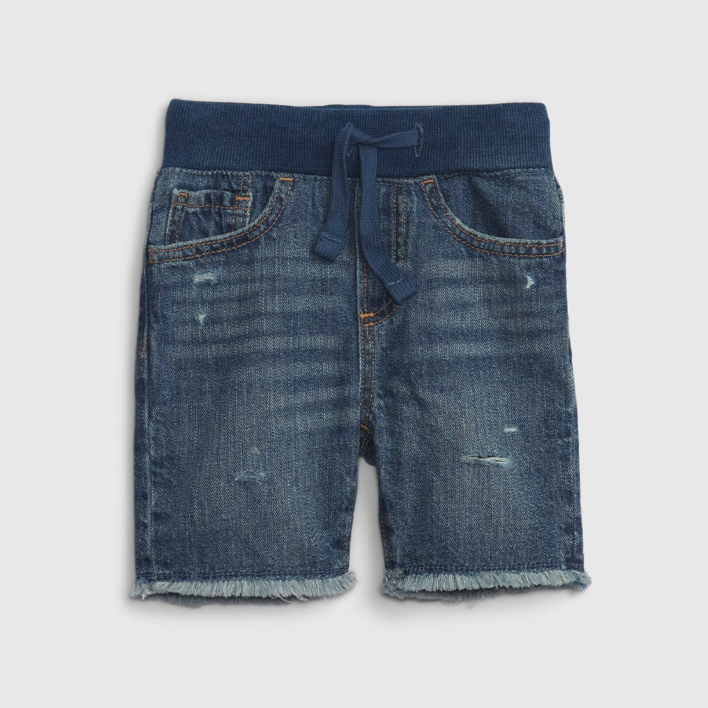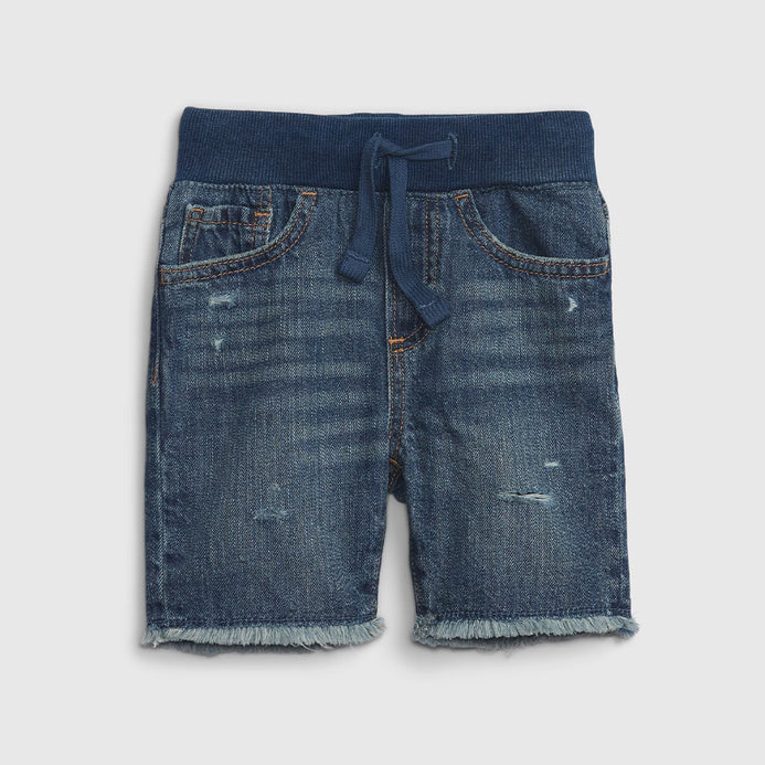 GP K Elastic Belt Ribbed Style Blue Denim Shorts 13998
