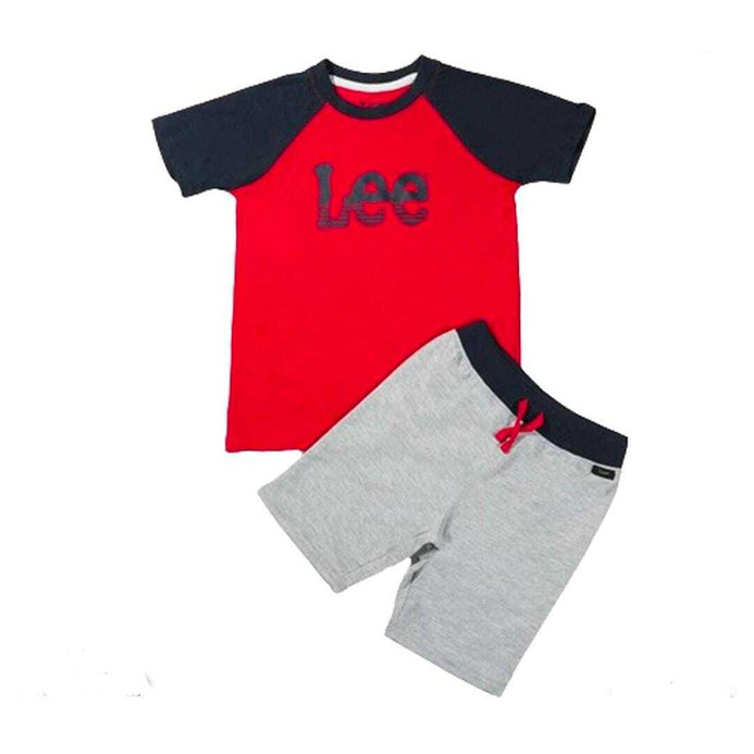 Lee Big Logo Print Red T-Shirt With Grey Shorts 2 Piece Set 13035