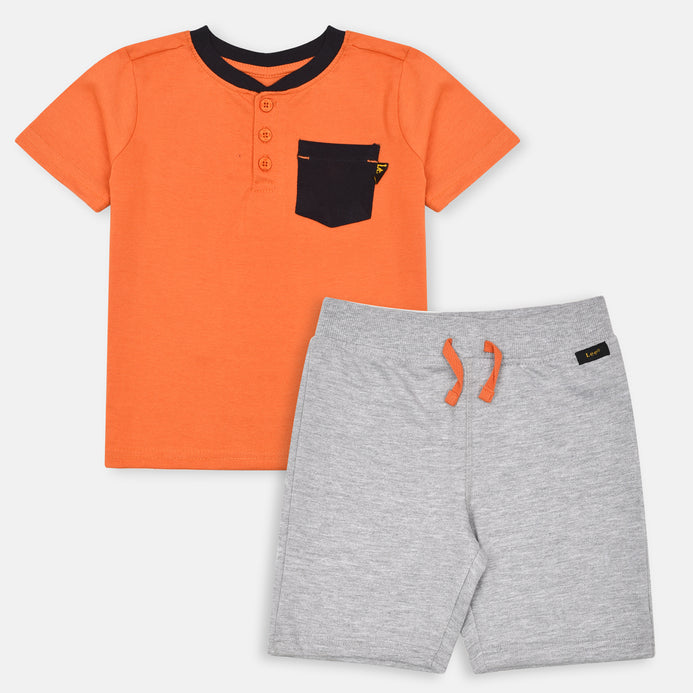 Lee Contrast Pocket Orange T-Shirt with Grey Shorts 2 Piece Set 13047