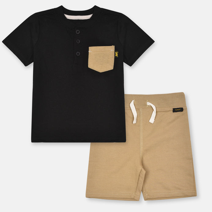 Lee Contrast Pocket Style Black T-Shirt with Khaki Shorts 2 Piece Set 13041
