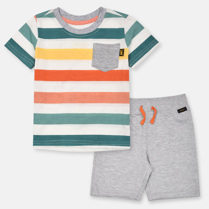 Lee Multi Big Stripes T-Shirts with Grey Shorts 2 Piece Set 13046