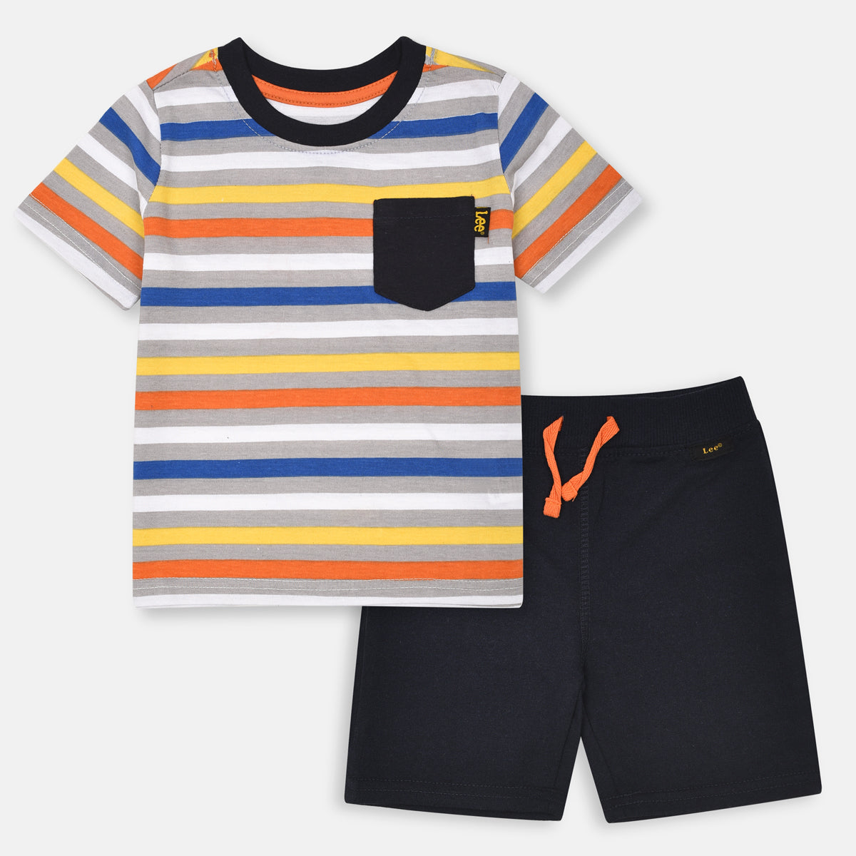 Lee Multi Stripes T-Shirts with Dark Blue Shorts 2 Piece Set 13038