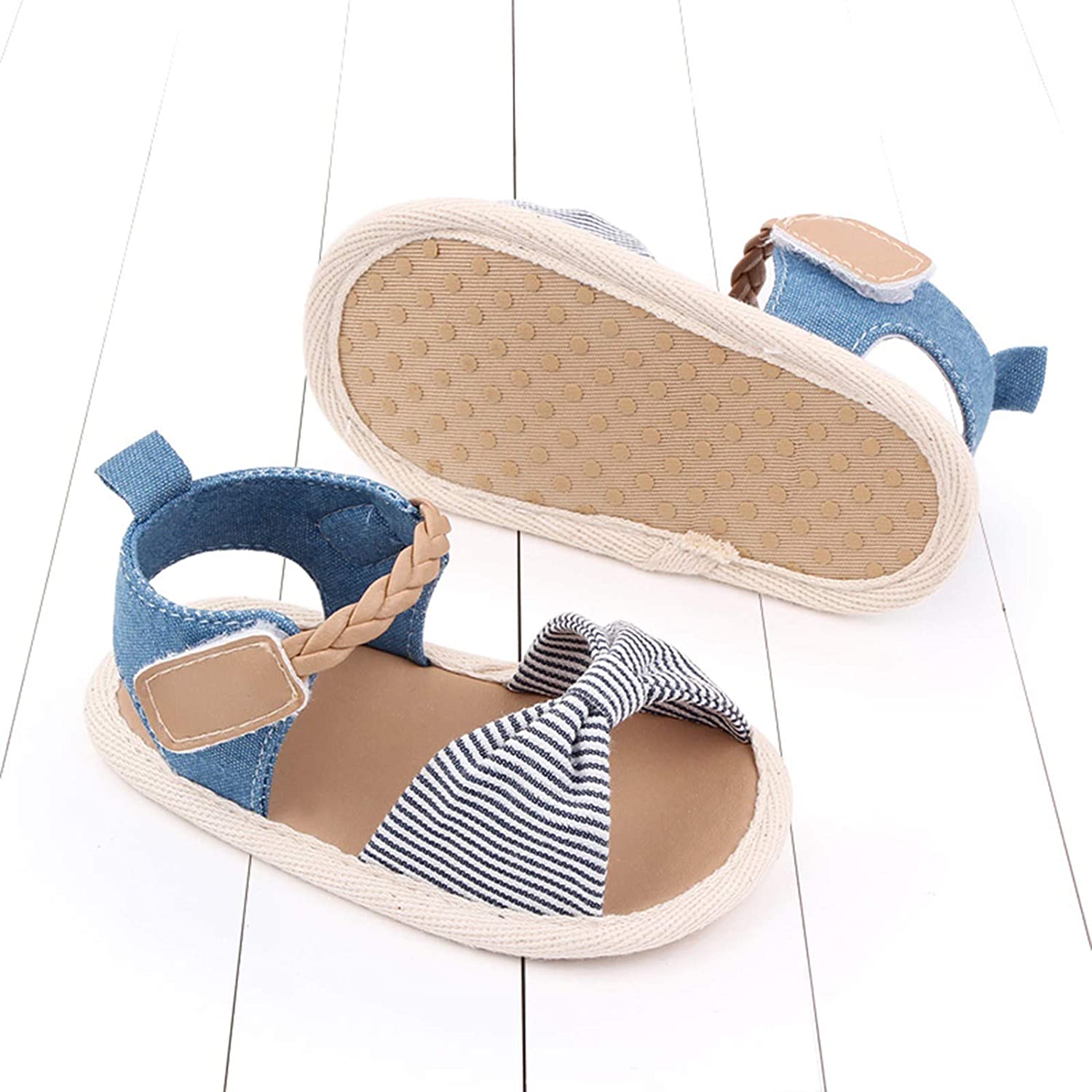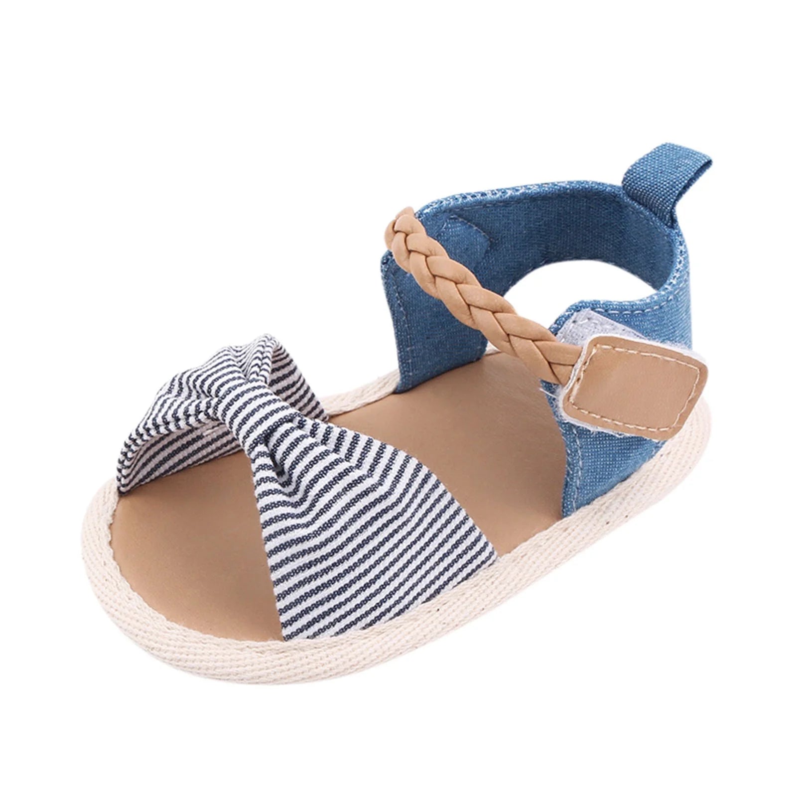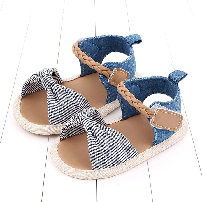 Magic Prewalker Black & White Stripes Braided Soft Bottom Sandals 11063