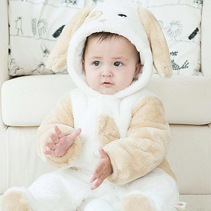 MKS Off White Rabbit Style Quilted Fur Romper With Cap 12358