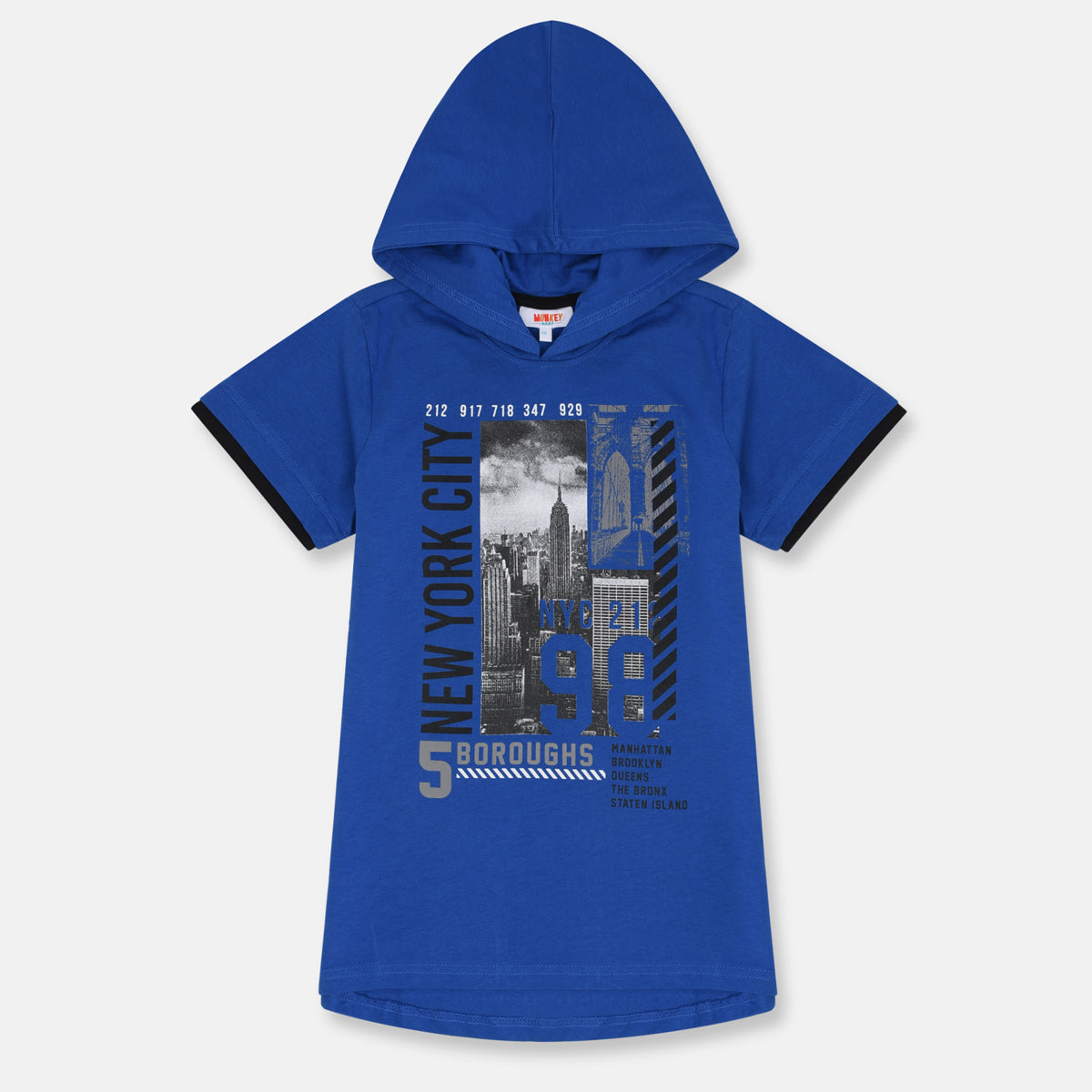 NDC Cool Dude NYC 21 Print Contrast Hoodie Half Sleeves Blue T Shirt 5100
