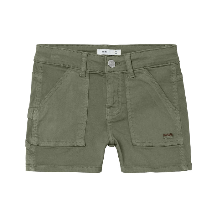NME IT Silver Button Square Pocket Green Cotton Shorts 13125