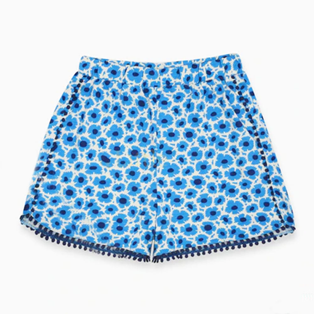 NXT Lace All Bottom over Blue Flowers Girls Soft Shorts 11176