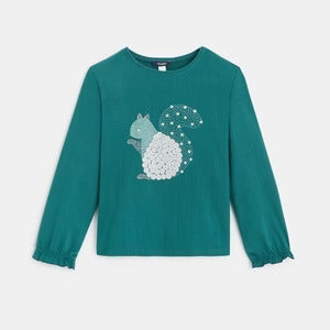 OKD Floral Squirrel Full Sleeves Teal T-Shirt 10871
