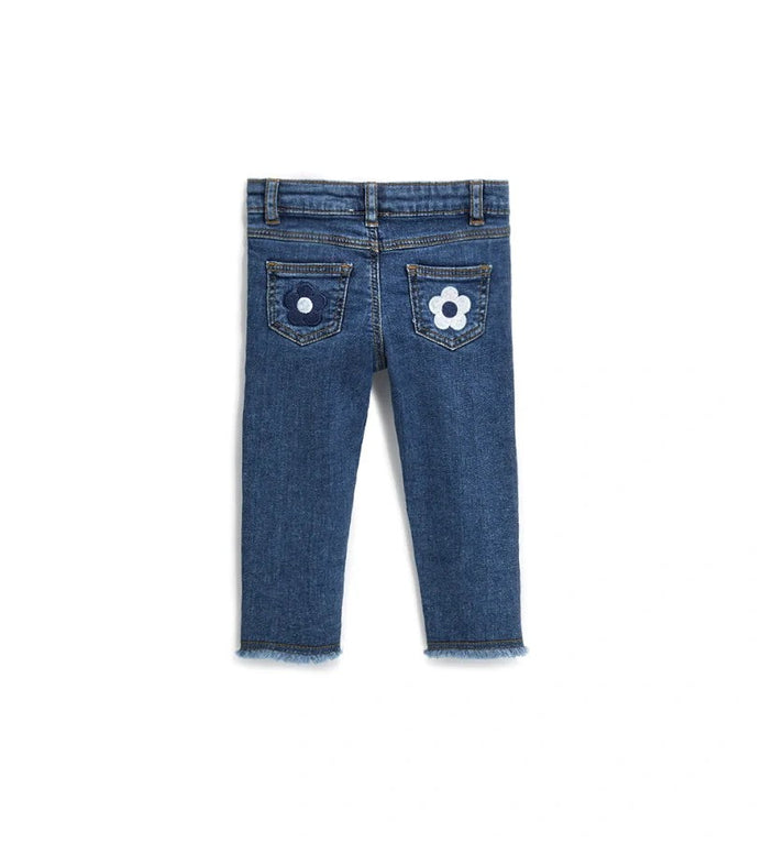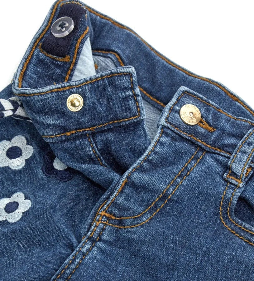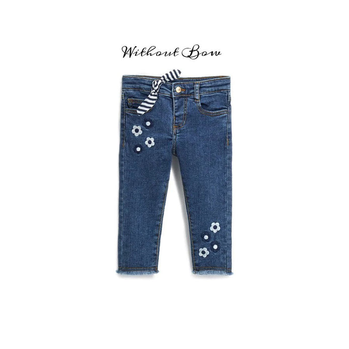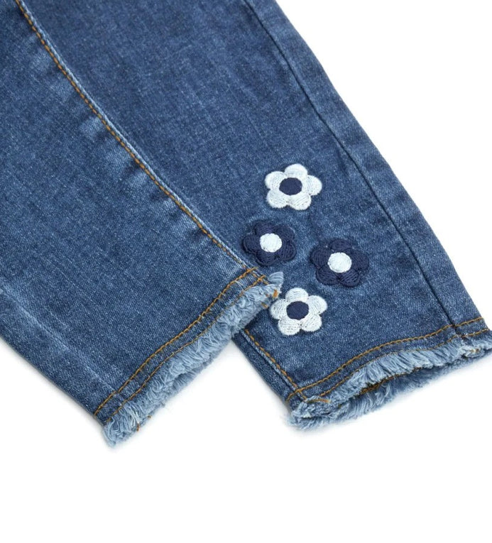OM Embroided Flowers Bow Style Blue Denim Pant 12962