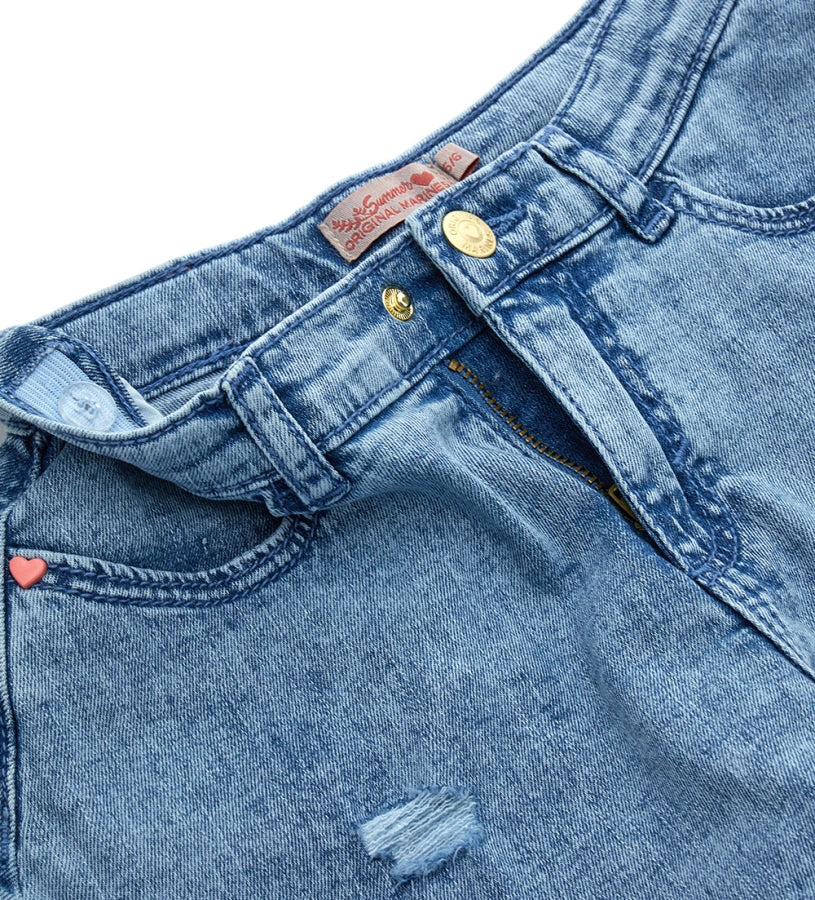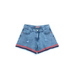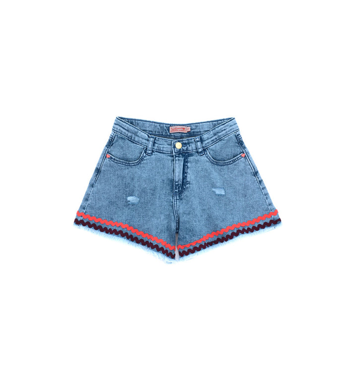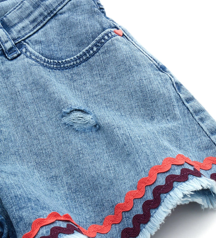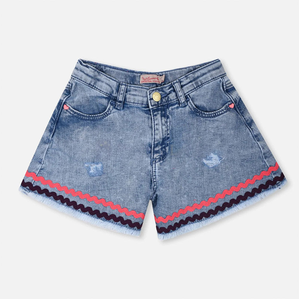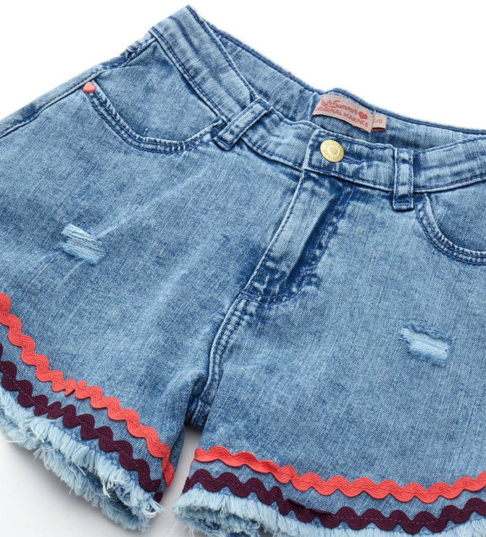 OM ZigZag Rough Bottom Girls Denim Blue Shorts 10794