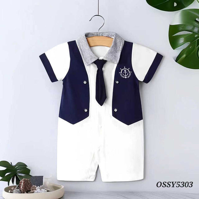 Pat Pat Anchor Wais Coat Style White Romper With Tie 12926