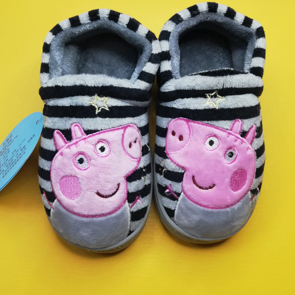 PP Peppa Aplic Black Grey Stripes Warm Shoes 10629