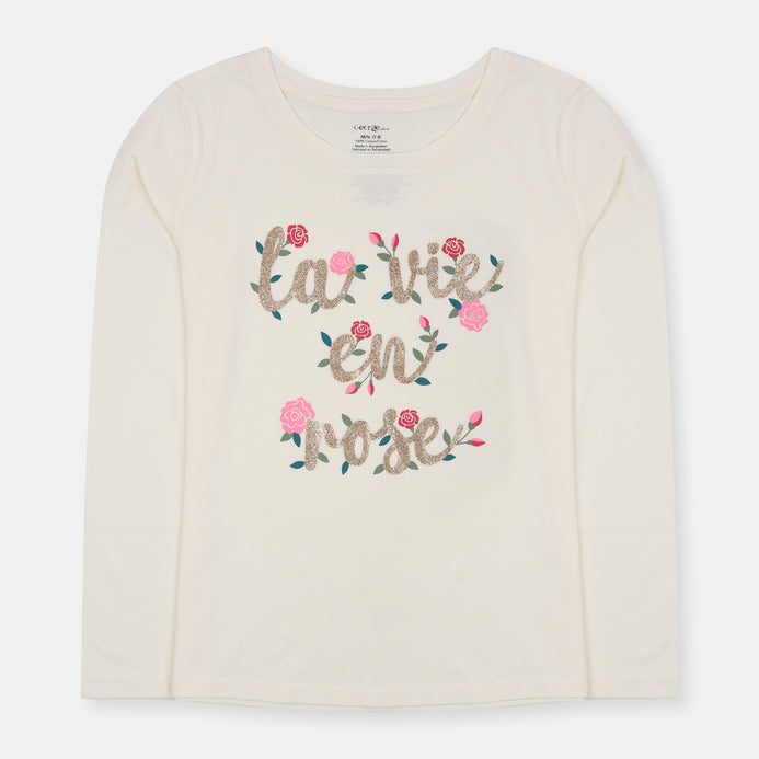 GRG Glitter Rose Full Sleeves White T shirt 10367
