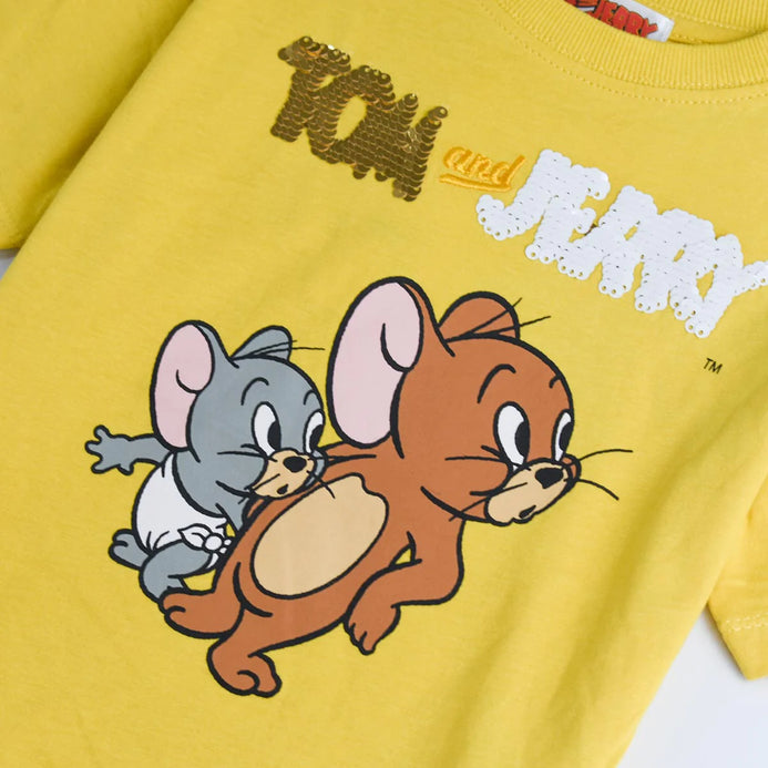Tom & Jerry Reversible Sequin Print Yellow T-Shirt 10962