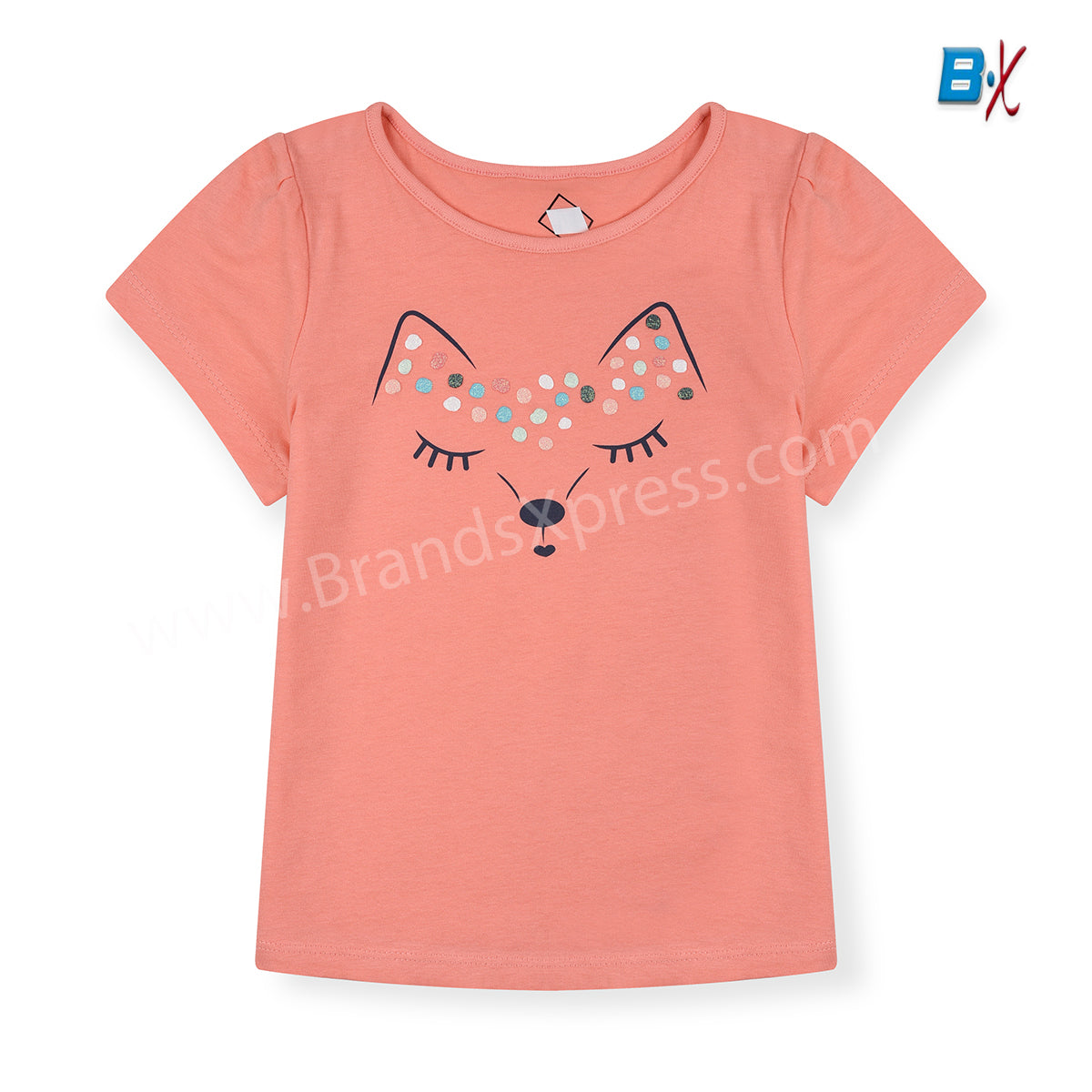TX Glitter Dots Fox Head Orange Top 9454