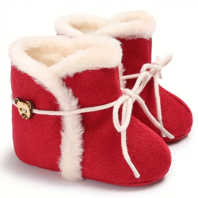VLSN Bear Badge Sweat Leather Fur Red Long Shoes 12133